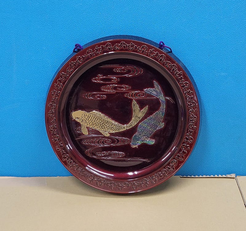 【装飾品】特選・美術漆器 鯉二匹・紫ひも、新品未使用品です。
