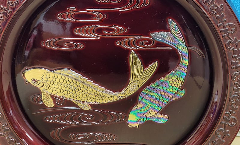 【装飾品】特選・美術漆器 鯉二匹・紫ひも JOA-252
